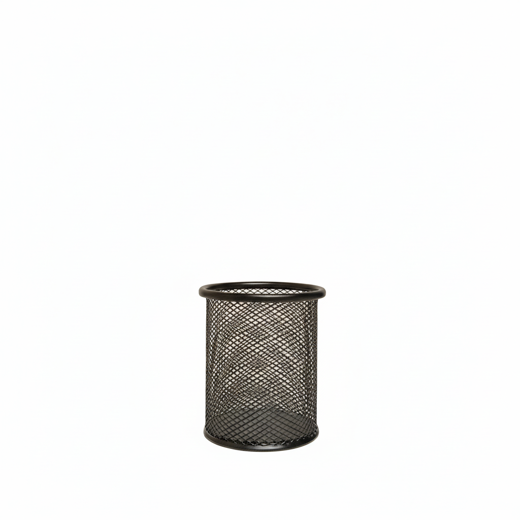 Streamline your desktop with the sleek Black Round Mesh Pen Holder (Model 63/07). Constructed from high-quality reinforced metal mesh with a scratch-resistant matte black finish, this circular desk organizer provides a sturdy and stylish home for your essential writing instruments. Featuring a solid base and smooth rounded edges, it is an essential tool for maintaining a clutter-free environment in any office, school, or home study.